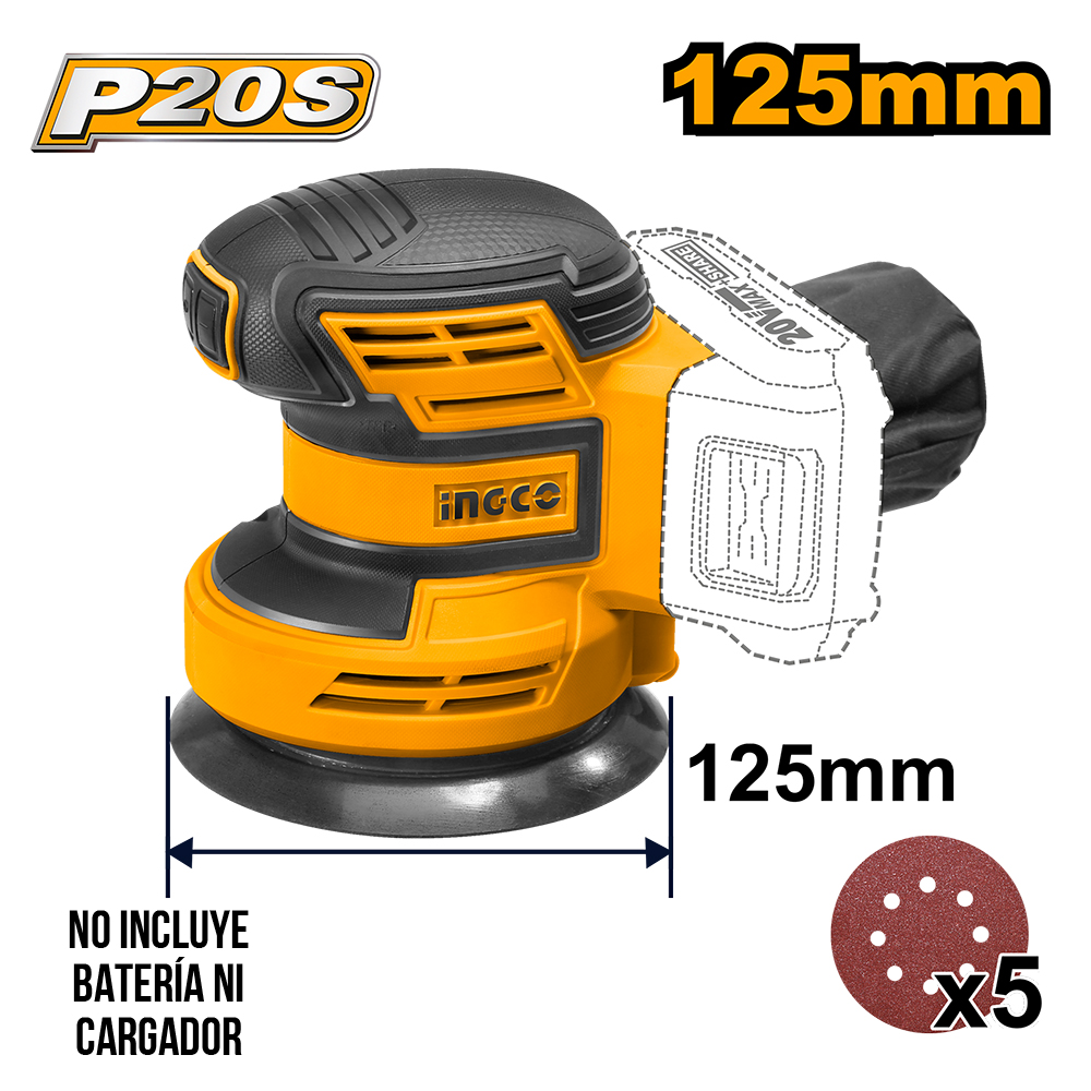 CSHSLI2014 – LIJADORA ORBITAL 110x100MM – SIN BAT. NI CARGADOR – INCLUYE 5 HOJAS DE LIJA