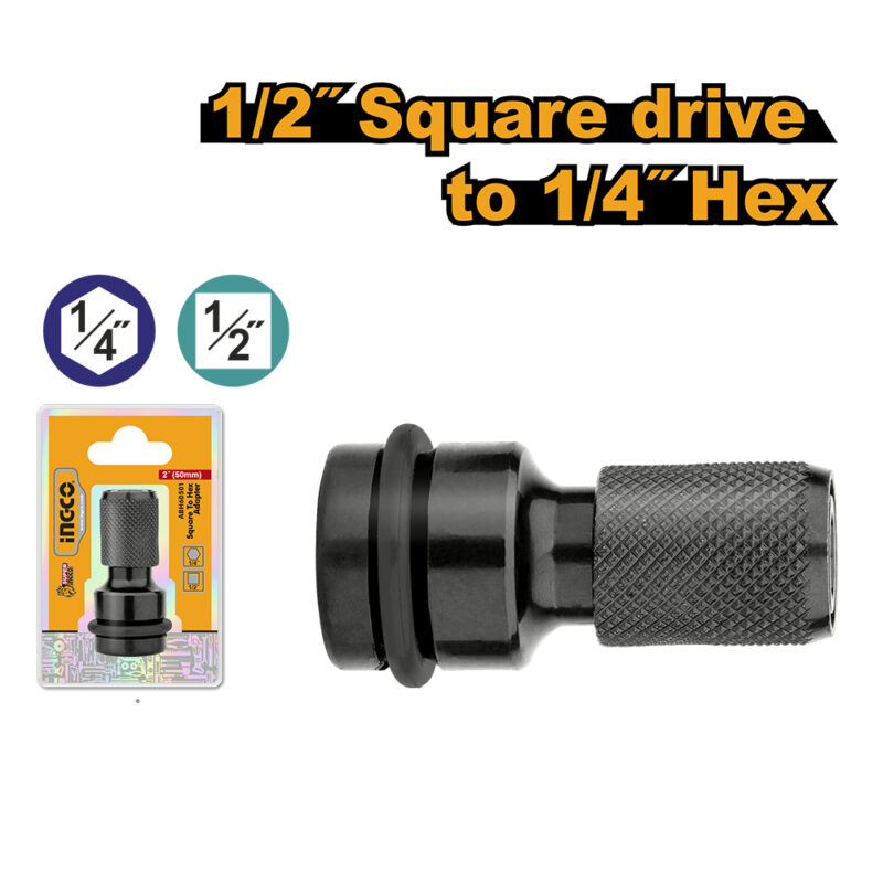 ■ Material: CR-Mo ■ Vástago: 1/2” cuadrado ■ Accionamiento: 1/4” HEX ■ Longitud: 50mm