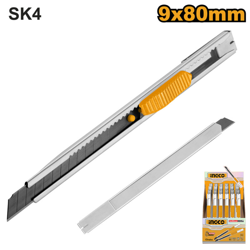■ Tamaño de la hoja: 9 x 80mm ■ Cuerpo de acero inoxidable ■ Bloqueo automático ■ Incluye repuesto