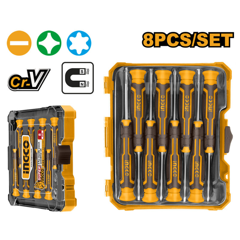 ■ Cr-V ■ Imantado ■ Contenido: – 1 pza SL2.0 x 50 – 1 pza SL2.5 x 50 – 1 pza SL3.0 x 50 – 1 pza PH000 x 50 – 1 pza PH00 x 50 – 1 pza PH0 x 50 – 1 pza T6 x 50 – 1 pza T8 x 50