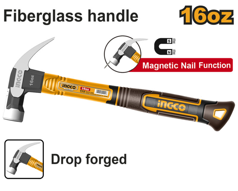 HCH81016 – MARTILLO GALPONERO MANGO FIBRA 450 GRS./16 OZ. FUNCIÓN IMÁN CABEZA DE MARTILLO FORJADA